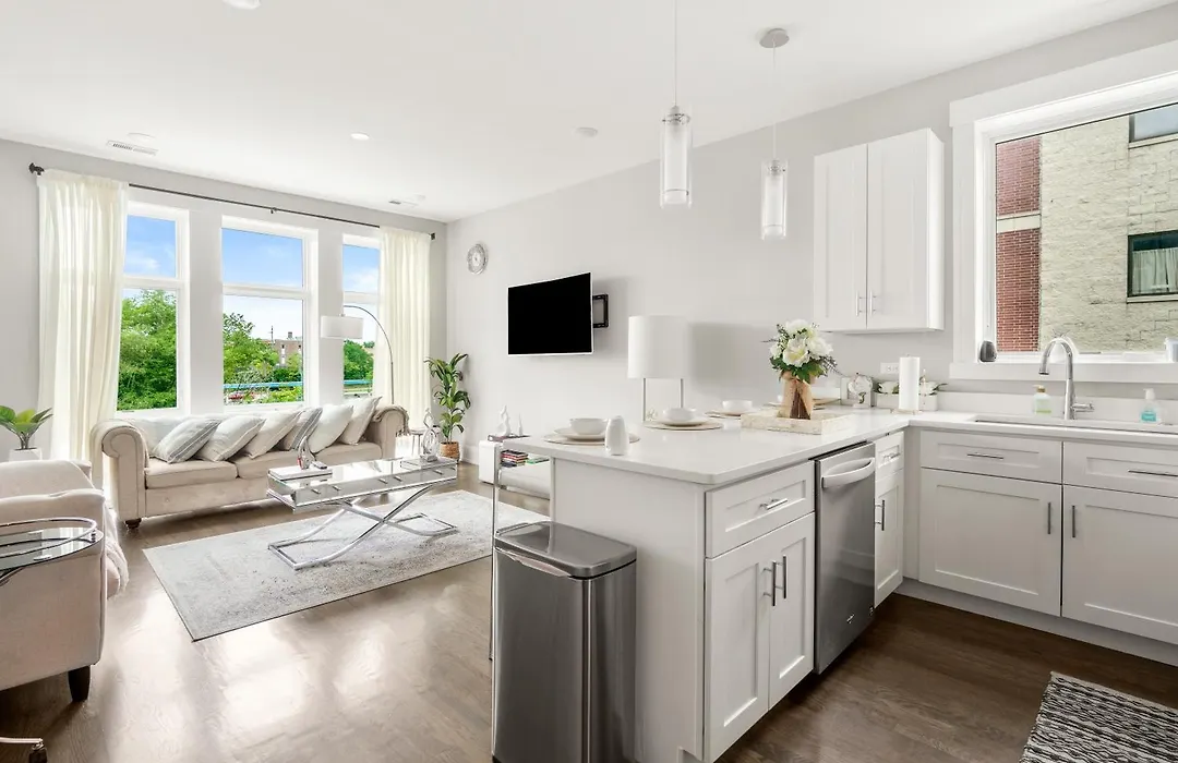 This 116 ft² apartment is located within a 15-minute drive of the skyscraper 360 Chicago Observation Deck. You can also reach the modern United Center Arena, which is 1.2 miles away.