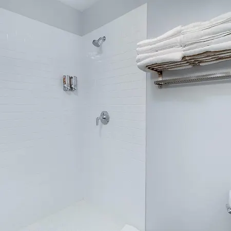 This apartment includes a patio with an air conditioner for utmost comfort. The accommodation has 5 bathrooms. A drier and towels are also included in the bathroom.