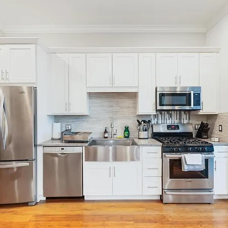 Balcony Gym 1 Garage Parking Sleeps 12 Apartment has a fully furnished kitchen equipped with oven and a dishwasher at the guests' disposal. Chicago Union train station is 1.2 miles away, and Madison & Throop bus stop is a stone's throw from Balcony Gym 1 Garage Parking Sleeps 12 Apartment. Guests will find a fitness area at their disposal, enabling them to stay in shape.