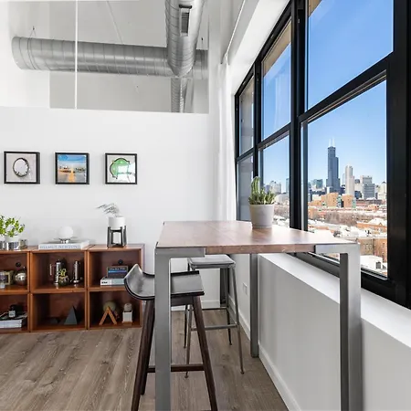 Why choose Modern Historic Loft 19Ft Ceilings, Gym, Heated Parking, Skyline Views, Balcony Apartment Chicago