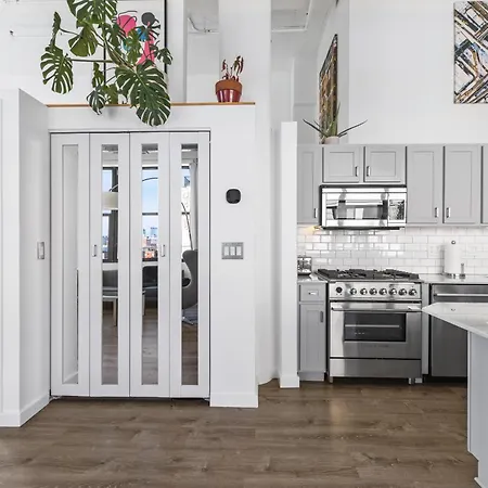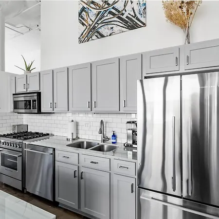 The 2-room Modern Historic Loft 19Ft Ceilings, Gym, Heated Parking, Skyline Views, Balcony Apartment Chicago provides swift access to various city landmarks, such as La Catrina Cafe, located approximately a 5-minute walk away. Guests can make use of Wi-Fi for both business and leisure purposes.