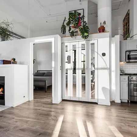 Modern Historic Loft 19Ft Ceilings, Gym, Heated Parking, Skyline Views, Balcony Apartment provides guests with an adjoining terrace, a balcony, and a dressing room, as well as such modern comforts as air conditioning. For added convenience, a bidet, a separate toilet, and a shower are available at the property. You'll also come across hairdryers.