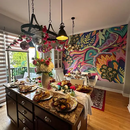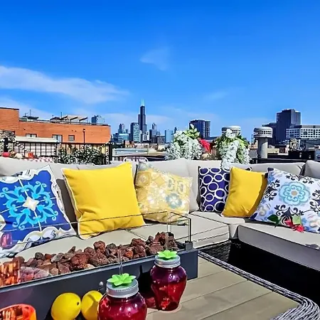 This 3-bathroom holiday home is nestled in the West Loop district of Chicago, 1.7 miles from the education hub like the public research University of Illinois at Chicago. Guests can access the super-tall skyscraper "Willis Tower" about a 10-minute drive from, while the skyscraper 360 Chicago Observation Deck is about a 15-minute drive away. Art Downtown Fulton Market Entire 3 Bedroom Home Sleep10 Private Garage Roof Ev Tesla is a good starting point for Chicago's sports attractions, including the baseball stadium "Wrigley Field", which is 4.1 miles away.