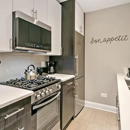 The self-catering facilities feature a full kitchen with a toaster, an oven, and a cooktop. The nearest restaurant is Argo Tea Cafe, which serves healthy food, located around 500 metres from the apartment. The accommodation is situated about a 10-minute drive from Chicago Union train station and just a short stroll from Broadway & Surf bus station.