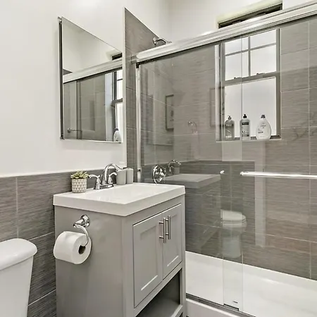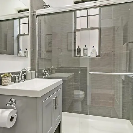 Staying at Captivating 1Br Apt With Full Kitchen - Belmont I4, guests have access to a sitting area equipped with air conditioning. For added convenience, a separate toilet and a shower are available at the apartment. A hair dryer, bath sheets, and towels can also be found.