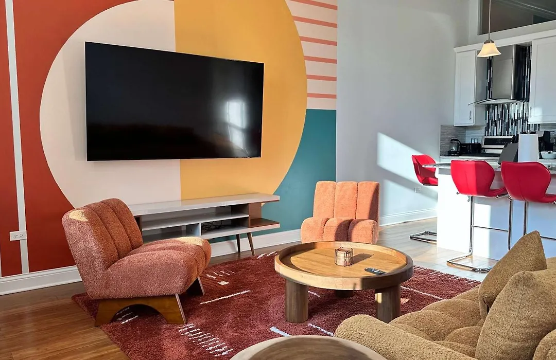 Chic 2 Bedroom 1 Parking Sleeps 6 apartment features an equipped kitchen with oven and a dishwasher at the guests' disposal. Chic 2 Bedroom 1 Parking Sleeps 6 apartment is in the vicinity of Ashland metro station and 10 miles from Chicago Midway International airport.
