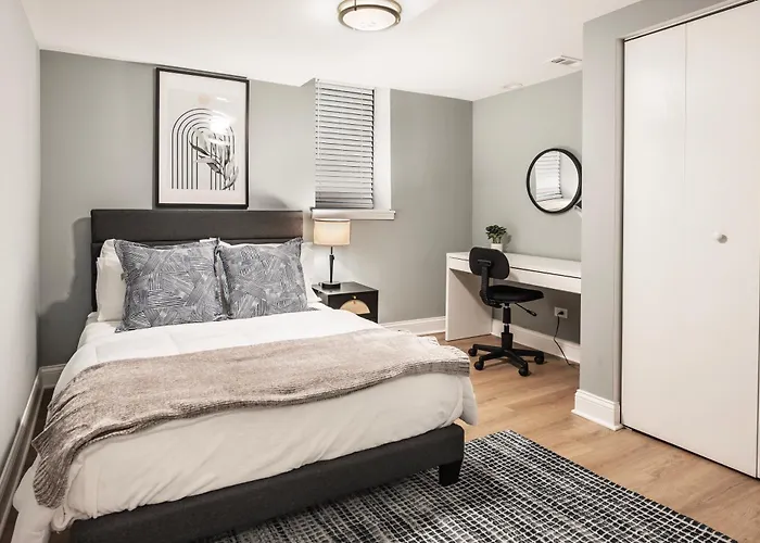 This apartment is equipped with self-catering amenities such as a fridge, oven, and a kitchenware, providing guests with the opportunity to prepare their own meals. The accommodation is located within a 16-minute drive of Midway International airport.