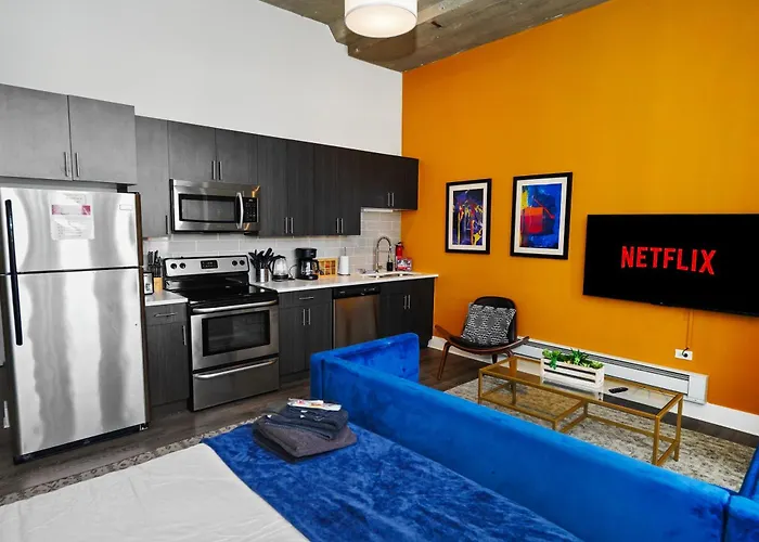 US$ 1436 price for 1 nightMore detailsCheck rates - Convenient Cozy 2Br Loft With Optional Parking For 8 Guests Near Mccormick Place, Soldier Field And Lakefront Trail