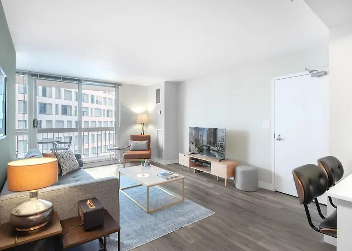 Located 1.8 miles from Buckingham Fountain, the 1-bedroom apartment is also 2.4 miles from the indoor public Shedd Aquarium. While exploring Chicago, guests can conveniently reach the Oak Magnificent Mile Street, which is just a 9-minute stroll away. 1.5 miles from Gold Coast Convertible W Terrace Nr The L Chi-82 apartment you will find the super-tall skyscraper "Willis Tower".