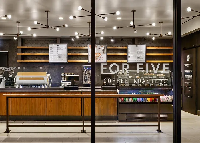 The property features a lounge bar and For Five Coffee restaurant serving American cuisine.