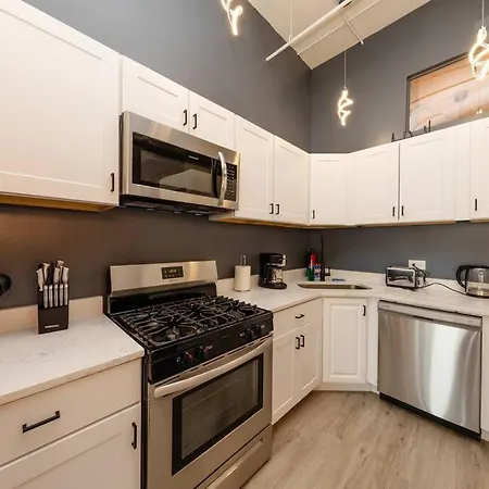 Also, there is a fully equipped kitchen for guests' comfort. Massive Luxury 5Br Loft For Groups Up To 12 Guests With Optional Parking And Gym Access Near Mccormick Place And Soldier Field apartment is not far from Cermak-McCormick Place metro station and 10 miles from Midway International airport. Guests can also aprticipate in billiards to add a touch of excitement to their stay.