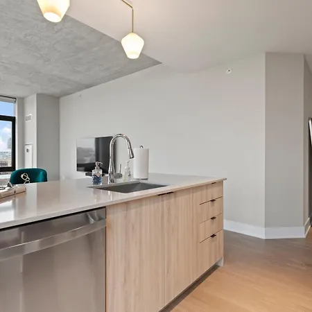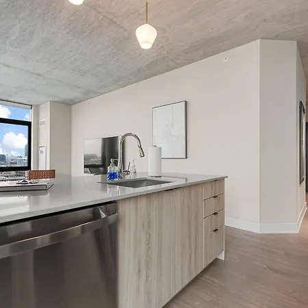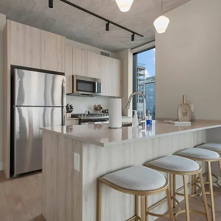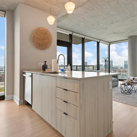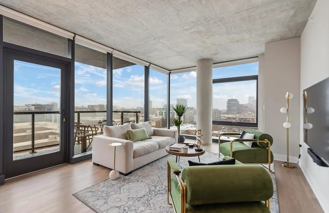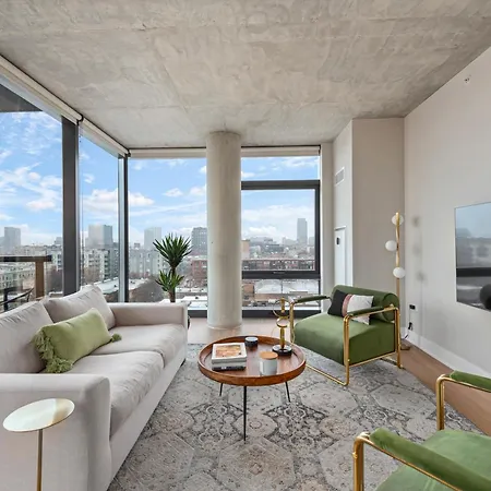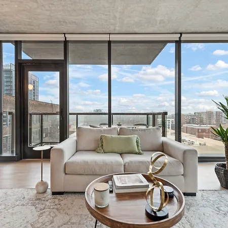 Sage Modern Apartments Near Union Park In West Loop Chicago is located in the West Loop district, and UIC-Halsted metro station is approximately a 10-minute walk away. The apartment offers a view of city, and there is a terrace.