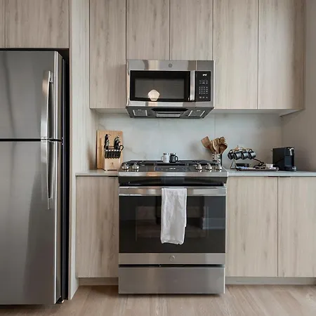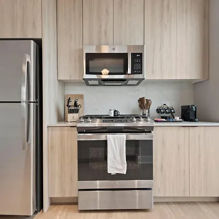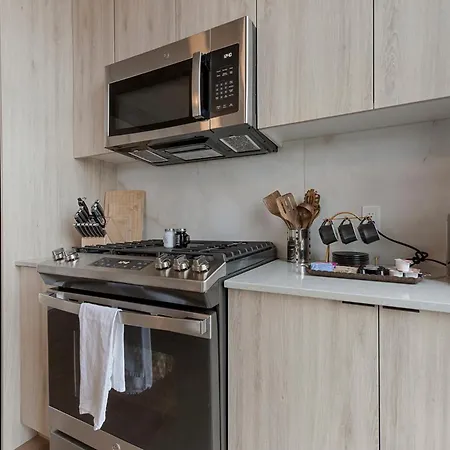 A fully furnished kitchen has all amenities needed for cooking, including oven and a dishwasher. Madison & Peoria bus stop lies fairly close to Sage Modern Apartments Near Union Park In West Loop.