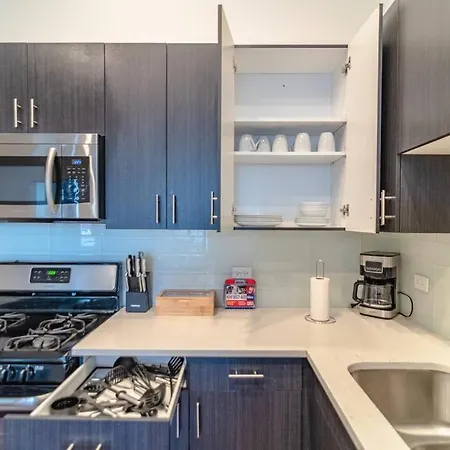 The accommodation includes a fully furnished kitchen with oven and a dishwasher, allowing guests to prepare their own meals. Cermak & Prairie bus stop is not far from the apartment, and Cermak-McCormick Place metro station is approximately a 10-minute walk away.