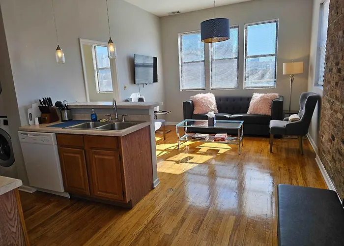 Located 1.7 miles from The Chicago Theatre, this apartment is also 2.8 miles from the indoor public Shedd Aquarium. The apartment lies in the West Town district of Chicago. The skyscraper 360 Chicago Observation Deck is also set around 10 minutes' drive away.