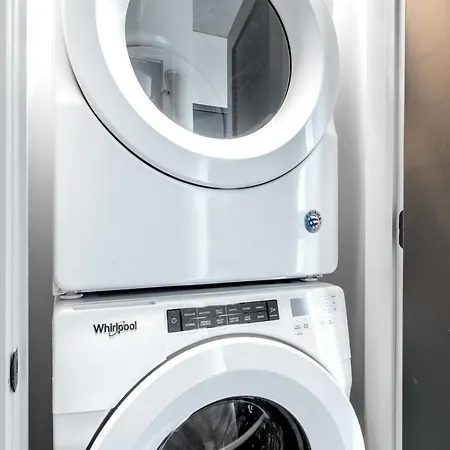 The apartment includes a washing machine for your comfort. Additionally, you'll find a hair dryer.